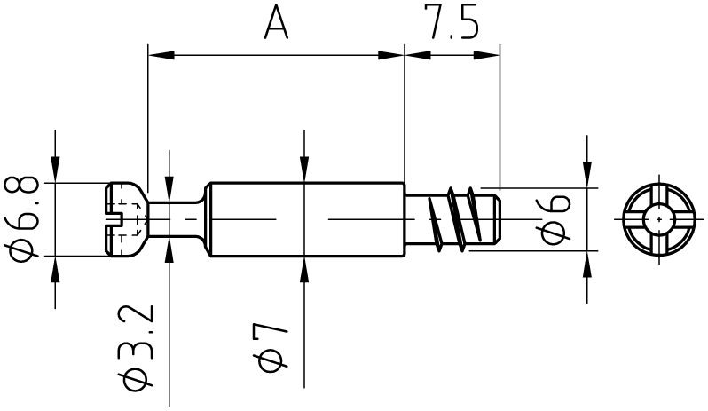 Bolzen für Systemverbinder Kopf-D 7 mm, Kreuzschlitz
