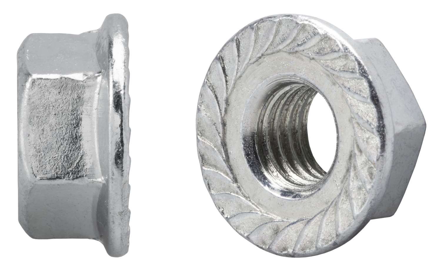 - 15170015 Sechskantmuttern mit Flansch und Sperrverzahnung Kl.8 ähnlich DIN 6923