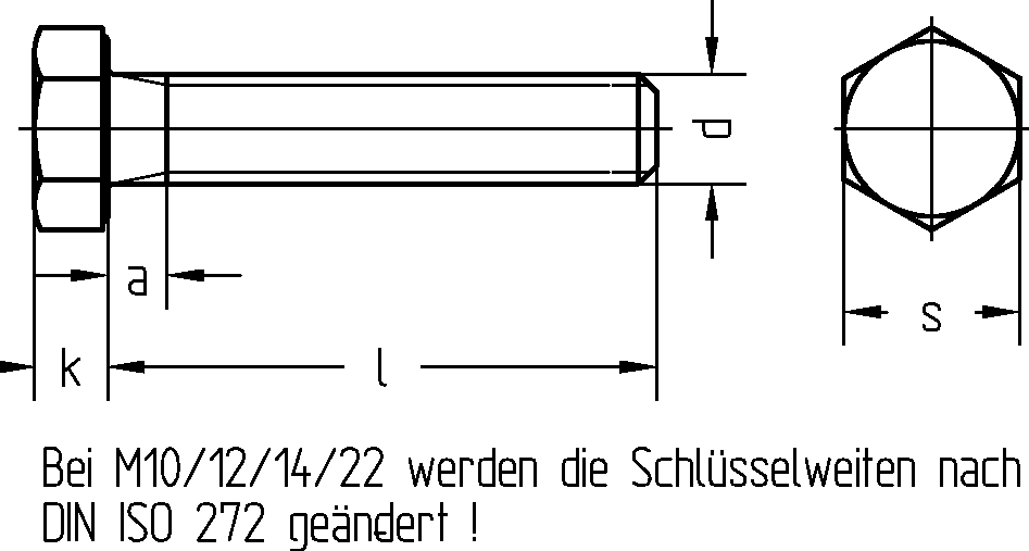 Feingewinde mit Gewinde bis Kopf 8.8