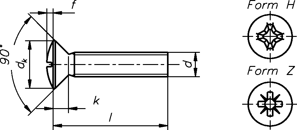 DIN 965 countersunk screws with cross slot