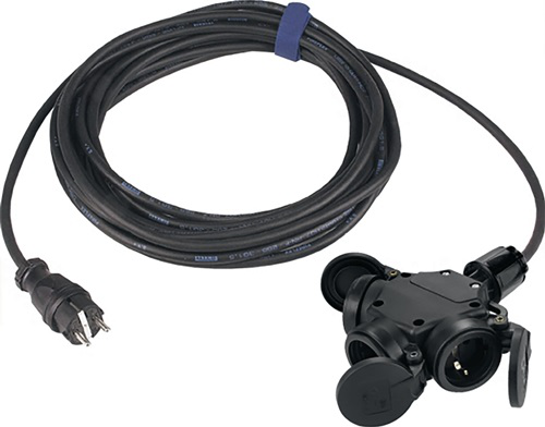mit Vollgummi 3-Wege-Kupplung mit schwerer Gummischlauchleitung · komplett mit Vollgummistecker und Kupplung mit selbstschließenden Feder-Klappdeckeln · spritzwassergeschützt (IP44)Gummischlauchleitung H07RN-F