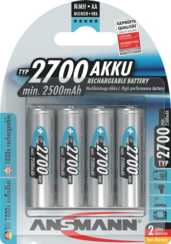 Battery cell 1.2 V 2700 mAh R6-AA battery HR6 4 4 pc./blister ANSMANN