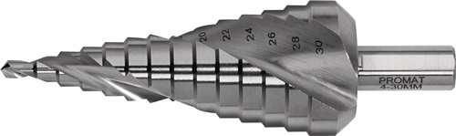 Step drill drill. range 4-30 mm HSS spiral-grooved no. of cutters 2 no. of steps