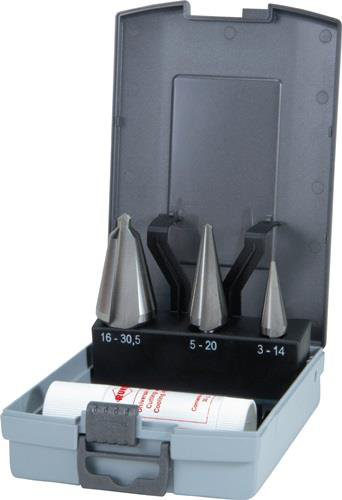 - 20002012 Blechschälbohrersatz 3-14 / 5-20 / 16-30,5 mm 4 teilig ABS-Kunststoffkassette RUKO