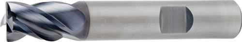 VHM · Universal-Feinstkorn · TiAlN-beschichtet · DIN 6527 K (ähnlich) · Typ HPC · Vierschneider · kurz · 45° Schutzfase · Zentrumschnitt · mit Zylinderschaft nach DIN 6535 HB · ungleiche Steigung · ungleiche Teilung · rechtsschneidend · Vorteile: Für vibrationsarme Bearbeitung, zum Schruppen und Schlichten geeignet. Durch bewährte HPC-Geometrie mit Ungleichteilung und Multilayer-Beschichtung universell einsetzbar. Zum Fräsen in Stahl, Stahlguss, Grauguss, Temperguss, Cr-Ni-Stählen, NE-Metallen, Aluminium mit Siliciumanteil und abrasiven WerkstoffenWeitere technische Eigenschaften: