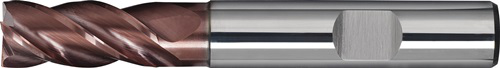 VHM · Universal-Feinstkorn · TiAlN-beschichtet · DIN 6527 L · Typ N/HPC · Vierschneider · lang · 45° Schutzfase · Zentrumschnitt · mit Zylinderschaft nach DIN 6535 HB · ungleiche Steigung · rechtsschneidend · Halsfreischliff · für vibrationsarme Bearbeitung, zum Schruppen und Schlichten geeignet · durch neu entwickelte Geometrie und Beschichtung universell einsetzbar zum Fräsen in Stahl, Stahlguss, Grauguss, Temperguss, Cr-Ni-Stählen, NE-Metallen, Aluminium mit Siliciumanteil und abrasiven WerkstoffenWeitere technische Eigenschaften: