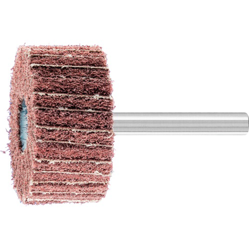 Korund A und Siliciumcarbid · Anordnung des Vliesmaterials radial in Lamellenform, wobei sich zwischen den Lamellen jeweils ein Schleifgewebe befindet, dadurch höherer Materialabtrag und ein gröberes Schliffbild · Schaft-Ø 6 mmWeitere technische Eigenschaften: