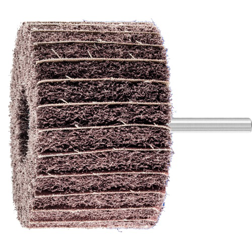 Korund A und Siliciumcarbid · Anordnung des Vliesmaterials radial in Lamellenform, wobei sich zwischen den Lamellen jeweils ein Schleifgewebe befindet, dadurch höherer Materialabtrag und ein gröberes Schliffbild · Schaft-Ø 6 mmWeitere technische Eigenschaften: