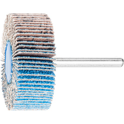 Zirkonkorund · für die Bearbeitung rostfreier Stähle und hochwarmfester Legierungen · hohe Schleifleistung · kein Zusetzen der Lamellen · für grobe Schleifaufgaben bei hoher Zerspanungsleistung und kühlem Schliff · schleifaktive Zusätze im Belag erzielen eine deutlich höhere Abtragsleistung, verhindern das Zusetzen und bewirken einen kühleren Schliff · Schaft-Ø 6 mmWeitere technische Eigenschaften: