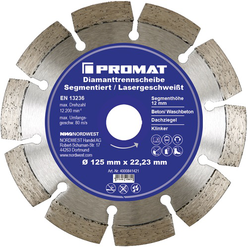Diamond cutting disc dm 180 mm bore 22, 23 mm laser welded 12 mm PROMAT
