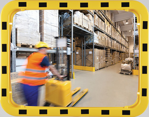 Miroir de sécurité/circulation H800xl1000mm acrylique, jaune/noir angle de visio