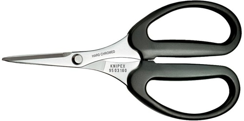 zum Schneiden von Fasern aus KEVLAR® in LWL-Kabeln, nicht für andere Werkstoffe benutzen · hartverchromte, geschliffene Oberfläche · Scherenkörper: Chrom-Vanadin-Elektrostahl, ölgehärtetSchere verchromt · Griffe mit Kunststoff umspritzt