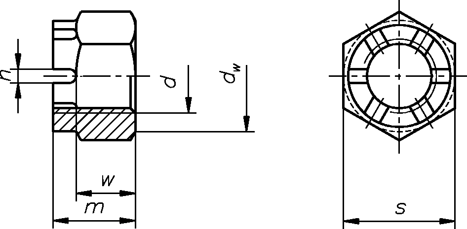 Ecrou hexagonal crénelé filetage fin DIN 935