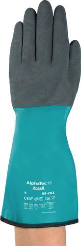Werkzeug & Technik Arbeitsschutz und Berufsbekleidung Chemikalienhandschuhe AlphaTec 58-201 Größe 8 grün/grau EN 388,EN 374,EN407,EN 511 PSA-Kategorie III ANSELL