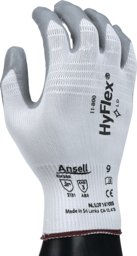 Gant HyFlex 11-800 taille 9 blanc/gris EN 388 catégorie EPI II nylon avec mousse