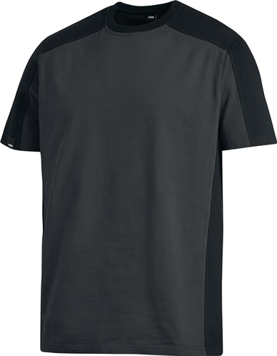100% Ringspinn-Baumwolle, ca. 210 g/m² · supergekämmt · Single-Jersey · Rundhalsausschnitt mit Elastan · Doppelnähte am Halsausschnitt sowie Ärmel und Saum · Verstärkung durch Nackenband und Doppellage in Halbmondform · keine SchulternahtWeitere technische Eigenschaften:
