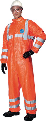 EN 14126, EN 1073-2, EN ISO 20471 Kl. 3, EN 1149-5 (auf der Innenseite), Kat. III, Typ 5 B + 6 Bmit Kragen · Schutz durch ergonomisches Design · außenliegende Nähte · Gummizüge an Ärmel- und Beinenden · elastischer Gummizug im Rückenbereich · Tyvek®-Reißverschluss mit Abdeckung · fluoreszierend orange mit grauen, reflektierenden Streifen auf Anfrage auch ab Gr. S und bis Gr. 3XL lieferbar