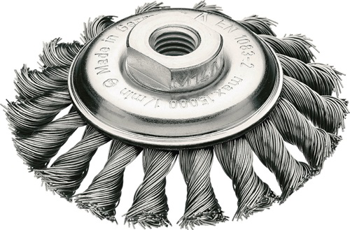 Brosse conique D. 100 mm filetage épaiss. de fil 0,5 mm acier 12 mm 15 000 min-¹