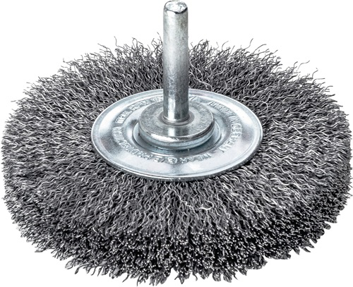 Brosse plate D. 50 mm tige 6 mm épaiss. de fil 0,3 mm acier 11 mm 15 000 min-¹ L