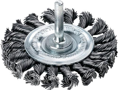 Brosse plate D. 75 mm tige 6 mm épaiss. de fil 0,5 mm acier 12 mm 25 000 min-¹ L