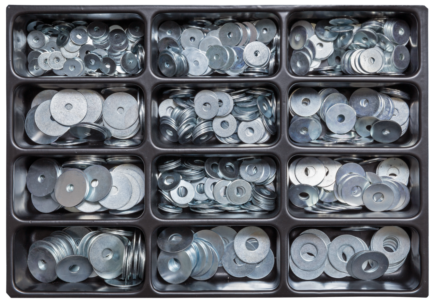 Sortimente Kotflügelscheiben, galv. verz., 4,3x15x1,25 - 13x30x1,25