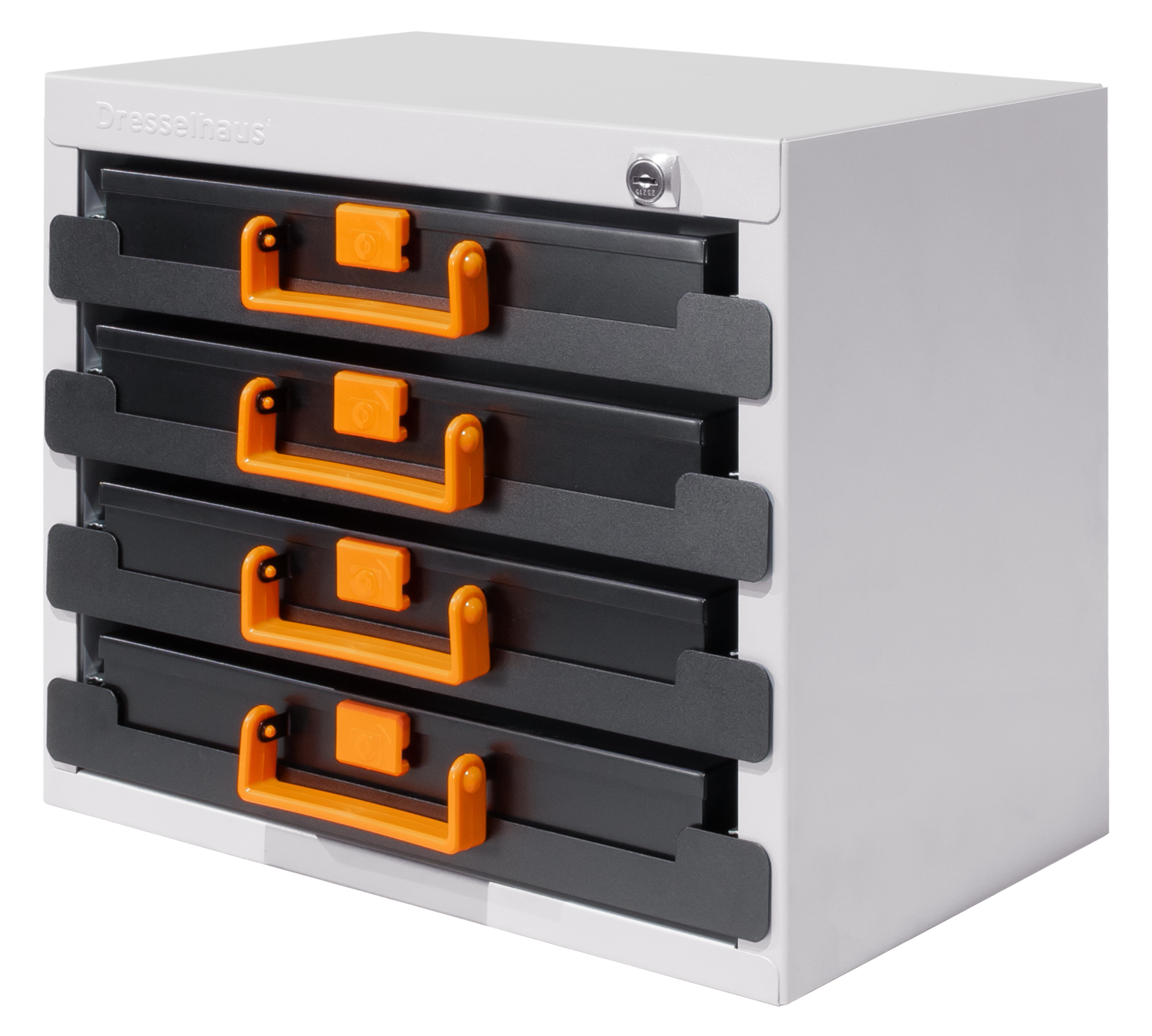 Aktions - Paket Sortimente-Schrank, 4-fach inkl. 4 leeren Blechkästen (8-fach, 12-fach, 18-fach, 24-fach), 520