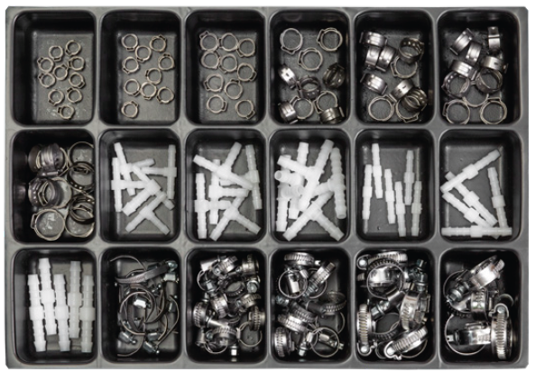 Sortimente 1-Ohr-Klemmen, Edelstahl Kunststoff-Schlauchverbinder Schlauchschellen Norma, 8526