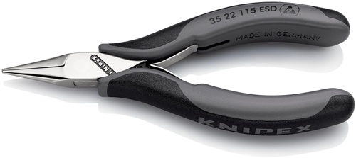 Electronic gripping pliers overall length 115 mm ESD flat-round jaws mirror poli