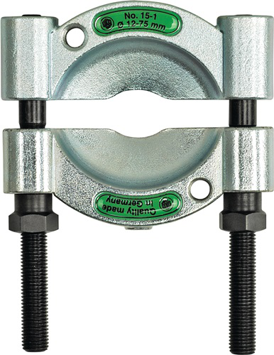 Anwendung: zum Abziehen von Kugellagern, Rollenlagern, Innenringen und anderen bündig aufsitzenden Teilen · die scharfen Schneiden ermöglichen das Abziehen bündig aufliegender Teile, wo 2- und 3- armige Abzieher unanwendbar sind(Abb. 1) · das Spannen der Trennbacken erfolgt durch gleichmäßiges Abziehen der Muttern auf den Seitenbolzen