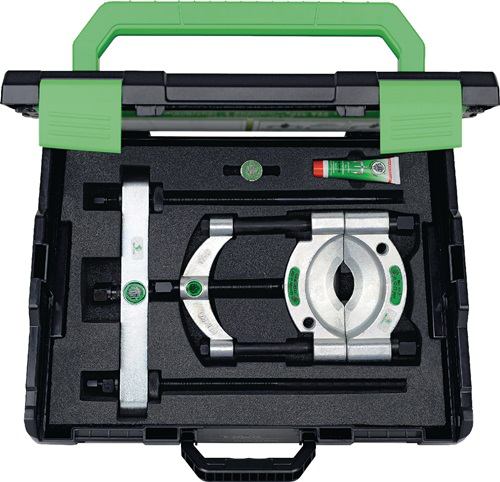 komplett mit Abziehvorrichtung · Schnellspann-Druckspindel · Sonderstahl · handliche Ausführung, da die Trennbacken durch eine Druckspindel schnell und zentrisch gespannt werdenAnwendung: zum Abziehen von Kugellagern, Rollenlagern, Innenringen und anderen bündig aufsitzenden Teilen, insbesondere für KFZ-, Landwirtschaft- und Industrie-Mechaniker