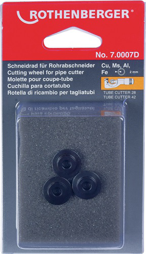 zum Schneiden von Rohren aus Kupfer, Aluminium und Mehrschichtverbundmaterial bis zu einem Ø 3-42 mm · passend zu Rohrabschneider Art.-Nr. 8000 738 935 und 8000 738 936VE = 1 Karte à 3 Stück