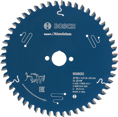 Kreissägeblatt Expert for Aluminium für Kapp- · Gehrungs- und Paneelsägen. Außendurchmesser: 315 mm · Bohrung: 30 mm · Schnittbreite: 2,8 mm · Stammblattstärke: 2,2 mm · Zähnezahl: 96. Für saubere Schnitte in Nichteisenmetalle wie Aluminium. Auch geeignet zum Schneiden von Kunststoffen und Epoxy · rohen Spanplatten · Akustikplatten · Leichtbauplatten · abrasive ein- oder zweiseitig beschichtete Plattenwerkstoffe sowie Faserwerkstoffe wie MDF- und OSB-Platten. Zähne aus Microteq für hohe Lebensdauer. Die Verwendung des Universalschneidöls 2 607 001 409 erhöht die Standzeit bei Schnitten in Metall · z. B. Aluminium · um ein Mehrfaches.