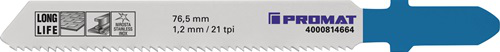 Jigsaw blade overall length 76.5 mm serration 1.2 mm BIM 5 pc./ card PROMAT