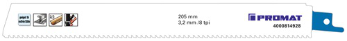 Reciprocating saw blade length 228 mm width 25 mm serration TPI 8 3.2 mm card of