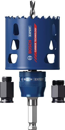 lange Lebensdauer beim Schneiden von Löchern in verschiedenen Materialen · mit Bosch Carbide Technology · perfekte Schnittform · ideal für schwere Aufgaben · einsatzbar in Holz, Metall, Edelstahl, Ziegelstein, weiche Fliesen und verstärkte Kunststoffe · zur Verwendung mit dem Power Change Plus-Schnellspann-AdapterWeitere technische Eigenschaften: