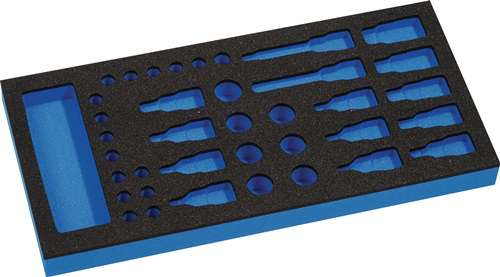 Leermodul für Promat Steckschlüsselsatz 6,3 mm (1/4")- und 12,5 mm (1/2") Vierkantantrieb, Einsätze aus CV-StahlWeitere technische Eigenschaften: