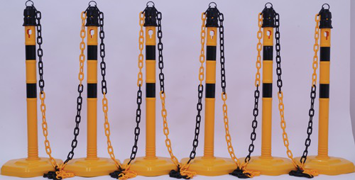 Security post set PPC yellow/black with hex base dm 63 x H1000 mm 6 posts and 5