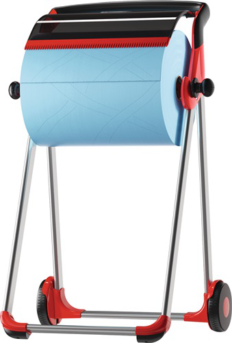 ohne Verbrauchsgut, für Putztuch-Rollen bis 430 mm Breite · stabiles Kunststoff-/Metallgestell · sicheres und zuverlässiges Abreißen durch Abreißkante mit glasfaserverstärkten ZähnenWeitere technische Eigenschaften: