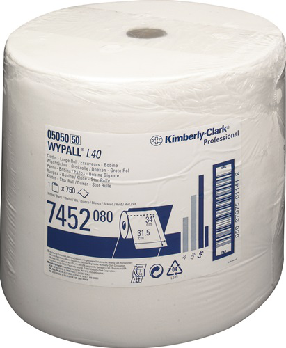 Wipe WYPALL L40 7452 L315xW310 approx. mm white 1-ply 750 wipes / roll WYPALL