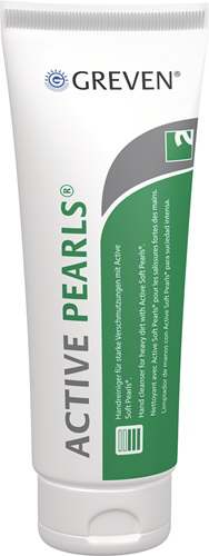 GREVEN® ACTIVE PEARLS® ist ein Handreiniger für starke Verschmutzungen, der hervorragende Reinigungswirkung erzielt, ohne die Haut durch abrasive Reibekörper zu belasten · dank der patentierten Schmutzlösekörper Active Soft Pearls® (ASP) wirkt GREVEN® ACTIVE PEARLS® hocheffektiv auch gegen hartnäckigen Schmutz – und schont dabei die Haut · mit einer sehr wirksamen und milden Tensidmischung aus Acylglutamat sowie mit rückfettenden Glycerinester · Anwendung: auf die trockenen Hände verteilen, Hände mit wenig Wasser waschen, gründlich abspülen und trocknenWeitere technische Eigenschaften:
