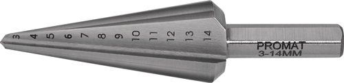 Conical sheet metal bit drill. range 3-14 mm HSS overall length 58 mm no. of cut