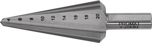 Conical sheet metal bit drill. range 4-20 mm HSS-Co overall length 71 mm no. of
