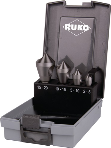 Cross-hole countersink set 2–5/5–10/10–15/15–20 mm HSSE-Co 5 4-part plastic box