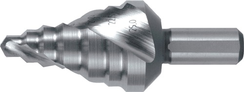 Step drill drill. range 6–25 mm HSS spiral-grooved no. of cutters 2 no. of steps