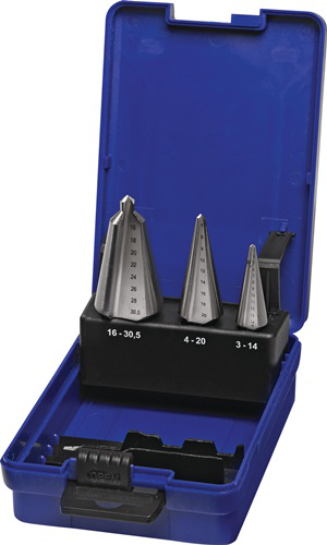 Conical sheet metal bit set 3-14 / 4-20 / 16-30.5 mm HSS-Co 3-part plastic box P