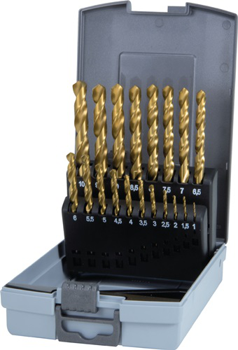 Twist drill set DIN 338 type N nominal dm 1–10 x 0.5 mm HSS TiN 19-part plastic
