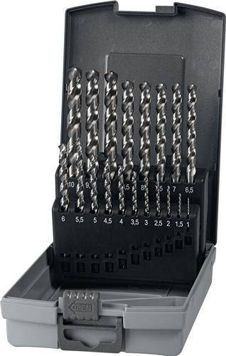 Werkzeug & Technik Zerspanung Spiralbohrersatz DIN 338 Typ UNI Nenn-Ø 1-10x0,5 mm HSS-Co 19-teilig Kunststoffkassette
