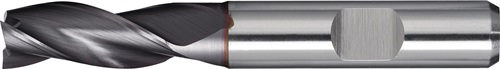 HSS-Co8 · DIN 844 · Typ N · Dreischneider · lang · Zentrumschnitt · Zylinderschaft mit Mitnahmefläche · rechtsschneidend · zum Fräsen von Werkstoffen mit geringer und mittlerer Festigkeit bis ca. 800 N/mm² mit unbeschichtetem Werkzeug und 1000 N/mm² mit beschichtetem Werkzeug · Nenn-Ø 9, 11, 13, 15 mm = Toleranz h10, Rest = e8Weitere technische Eigenschaften: