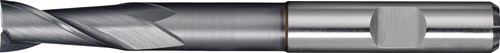 HSS-Co8 · TiCN-beschichtet · Typ N · Zweischneider · lang · Zentrumschnitt · Zylinderschaft mit Mitnahmefläche · rechtsschneidend · zum Fräsen von Werkstoffen mit geringer und mittlerer Festigkeit bis ca. 1000 N/mm²Weitere technische Eigenschaften: