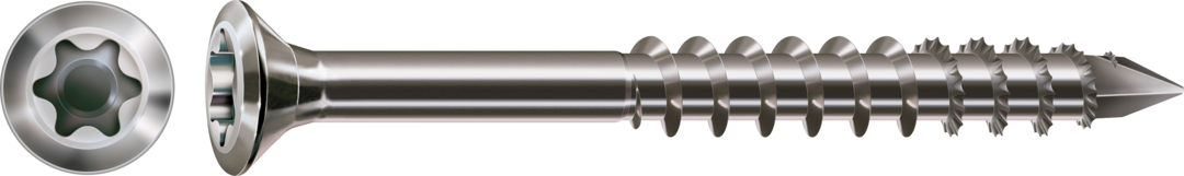 - 15286022 SPAX-Schrauben für Terrassen-Clip, 6 mm Kopf mit T-Star plus T-15 Linsensenkkopf mit CUT-Spitze, Teilgewinde, rostfrei A2